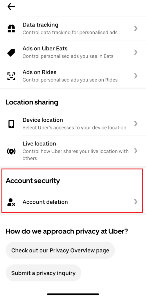You should know, though, that if you have an Uber Eats account using the same account details, it will also be deleted when your request is complete.