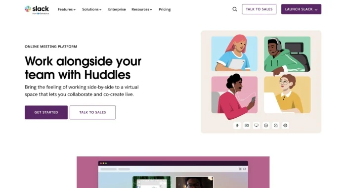 Slack’s landing page for “Huddles” uses looping videos to show real-time collaboration in action. You don’t just read about the feature, you see exactly what it can do. This instantly builds clarity and trust.